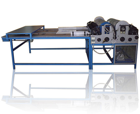 Technical Characteristics LxBxH (mm) 3.300x1.370x1.100 Voltage (V) 380 Frequency (Hz) 50 Power (KW) 0,75 Capacity (pcs/h) up to 1.800 Working width (mm) 1.200 Width of printing rolls (mm) 1.000 Max.printing length (mm) 900 Two-color flexo printing machine is used for printing natron sacks, chromo cardboard, multilayer glued paper and multilayer glued paper assembled boxes. Putting in printing machine is manual, during printer working cycle. Printing is performed with water-based paints.It is possible to print in more colors, but it is necessary to change the paint in containers and clichés, and pass printing material batch through the printer again. Also, it is possible to print infinite print on panels-width 1.200mm and arbitrary length. On other system of rolls, there are mechanisms for axial and transversal print adjustment, i.e second print in relation to the first.
